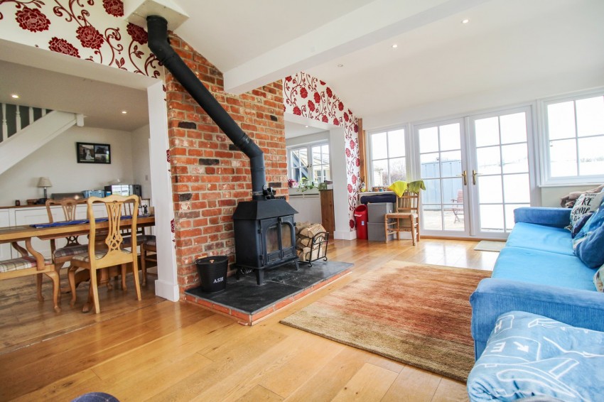 20' 11" x 11' 9" (6.38m x 3.58m) Front, rear and side aspect double glazed windows, stunning log burner, wooden flooring, French doors into rear garden, downlights.