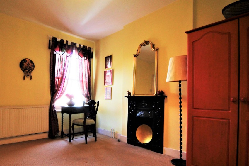 10' 8" x 10' 3" (3.25m x 3.12m) Rear aspect window, feature fireplace, laminate wood flooring, single radiator, built in shelving, tall double-doored cupboard, phone/internet connection point.