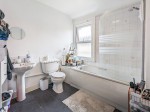 8' 8" x 8' 6" (2.64m x 2.59m) Side aspect double glazed window, low level wc, bath with shower head and screen, wash basin, partly tiled walls.